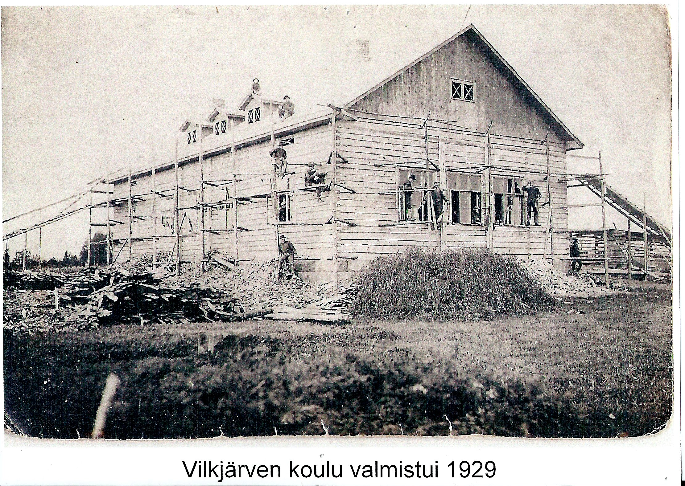 Rakennusurakan sai Lemiläinen Joonas Taipale 233 000 markan hinnalla. Rakennus tehtiin uusista paksuista hirsistä veistämällä. Joonaksen Toivo pojan lisäksi rakentamisessa auttoivat ainakin oivat Eljas Huomo, Toivo Huomo, Väinö Tankka ja August Tankka. Luultavasti muitakin kylän miehiä oli satunnaisissa aputöissä mukana. Yhteensä yli 300 000 markkaa maksaneen koulun vihkiäisiä vietettiin 17. marraskuuta 1929. Ensimmäisenä vuonna koulussa oli 41 oppilasta.